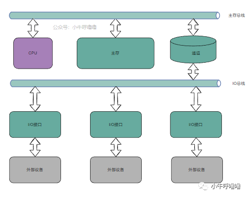 由于I/O 设备的访问速度是非常慢的,CPU这么昂贵的资源,不能让它一直等待I/O 设备的响应,所以增加一条I/O 总线,用于在多个外部设备与通道之间传送数据,将低速 I/O 设备从单总线上分离出来。另一条是主存总线,用于在 CPU、主存和通道之间传送数据。