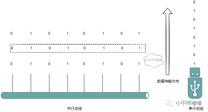 在详细介绍数据总线、地址总线和控制总线之前,我们还得先了解一下总线的串行和并行的区别