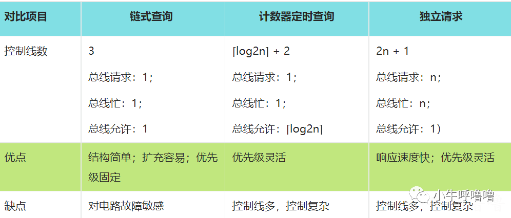 缺点:增加了控制线数(若设备有 n 个,则大致需要 ⌈log2n⌉ + 2 条控制线),控制也相对比链式查询要复杂。
