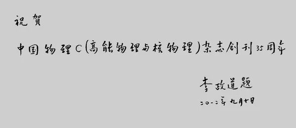 我在这里特别要提到的是李政道先生对CPC给予很大支持,除了为本刊投了三篇重要稿件外,还在创刊35周年之际,给本刊题词(图7),影响极大。