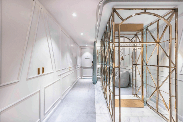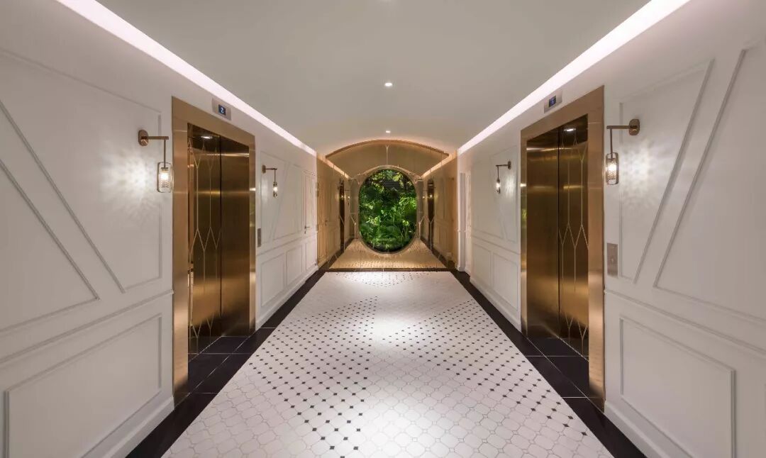 为了克服这一难题,设计团队通过采用视觉上的一些“小诡计”,巧用魔术与错觉的手法,以此创造出愉悦的空间,为客人带来难忘的体验。这种视觉上的“小诡计”巧妙地贯穿于酒店的所有空间中,其中包括传统地面图案以及家具设计的转化,例如定制的前台接待台,看起来就像是神奇地立在球体之上。设计师还创新性地采用了店中店的概念来打破线形地块,并在首层创造出令人愉悦的零售商铺界面。To overcome this, the studio introduced elements of visual trickery and surprise, notions of magic and illusions, with the end goal of creating delightful spaces and memorable guest experiences. This element of visual trickery is subtly introduced throughout the hotel; ranging from transformation of familiar heritage floor patterns, furniture design such as the custom reception desk that seems to magically balance on balls.