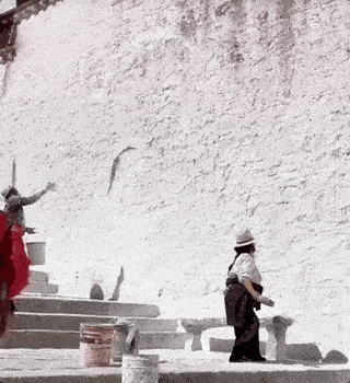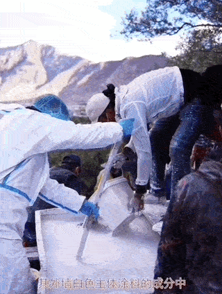 “使用的白色涂料中,会掺入民众自发捐赠的牛奶、蜂蜜、白砂糖、牛骨胶以及藏红花等,是为了增加粘性不容易脱落,也可以起到加强颜色和除异味的作用。”