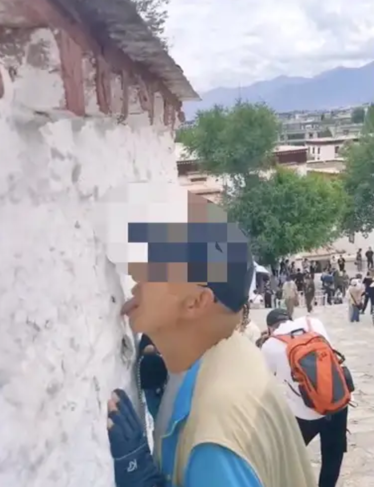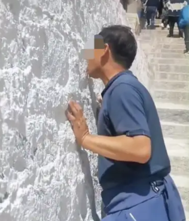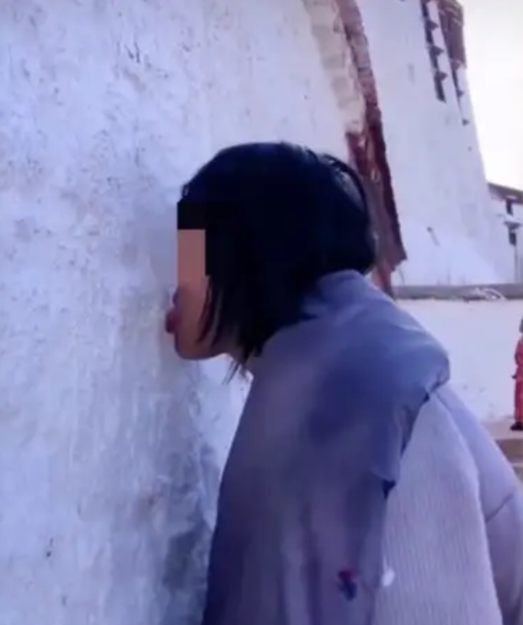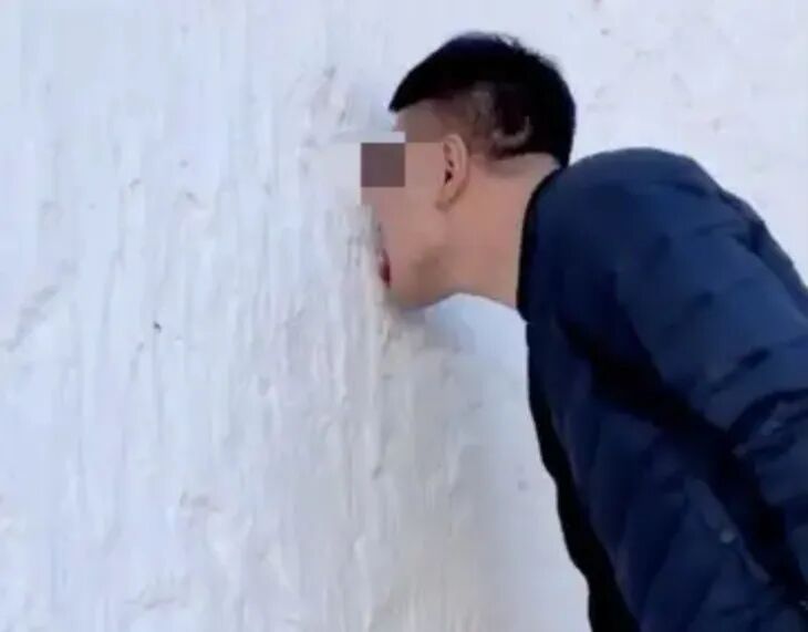 “同行的朋友猜测他们是有所感悟,正在面壁思过,结果走近看到大哥对着墙舔了两口,墙皮都舔掉了。”