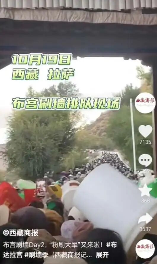 没人知道有多少人品鉴过布达拉宫的墙皮,也没人知道到底还有多少人等着去舔,据说民间已有商业嗅觉灵敏的朋友准备开展付费代舔服务。