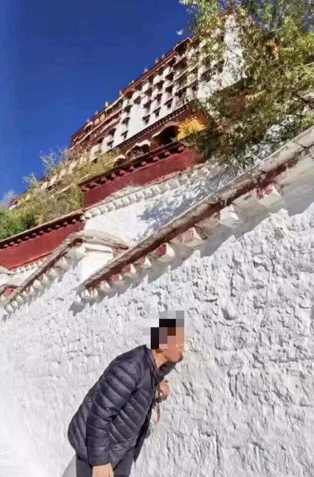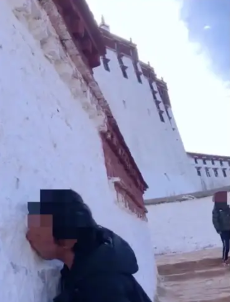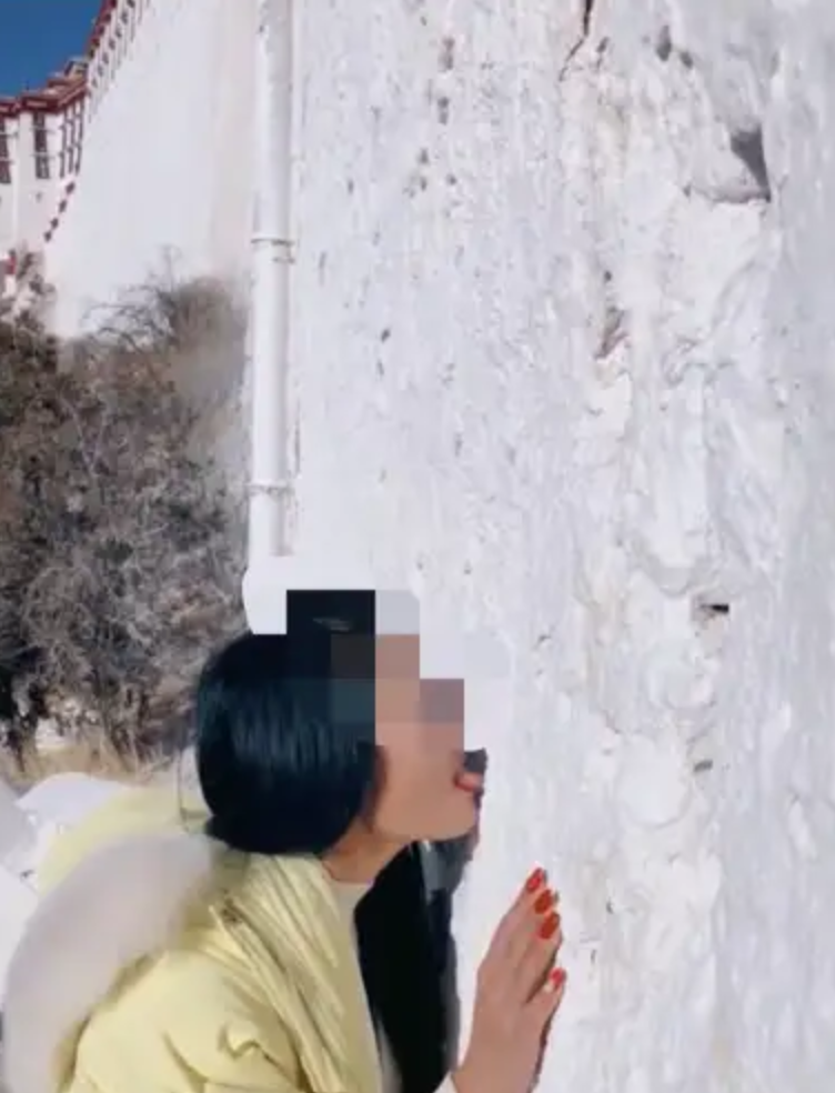 “之前去布达拉宫参观,路上看到过几个人往墙上趴,开始我还以为是什么习俗。”