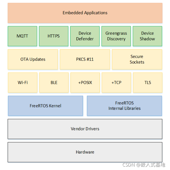 一个FreeRTOS 系统主要由BSP驱动+内核+组件组成。内核包含多任务调度、内存管理、任务间通信的功能,组件包含网络协议、外设支持等。