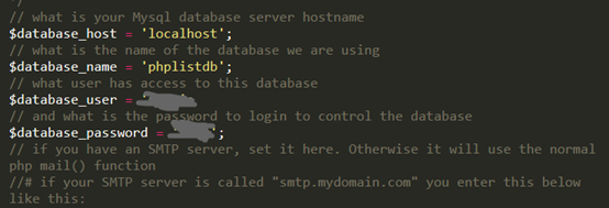 config/config.php配置文件,设置要连接的数据库和账户密码:同时建立phplistdb数据库。访问http://127.0.0.1/phplist/admin/;接下来初始化安装,设置管理员的账号密码:0e开头的字符串,如TyNOQHUS。34250003024812进行登录,其sha256后也是以0e开头。“TyNOQHUS——hash :“34250003024812——hash:$encryptedPass(密码sha256后的值)是使用==来判断和数据库中的值是否一样,即$encryptedPass == $passwordDB。0exxxxx == 0eyyyyy(会把每一个以”0e”开头的哈希值都解释为0),具体代码如下图:PHP在处理哈希字符串时,会利用”!=”或”==”来对哈希值进行比较,它把每一个以”0e”开头的哈希值都解释为0,所以如果两个不同的密码经过哈希以后,其哈希值都是以”0e”开头的,那么PHP将会认为他们相同,都是0。