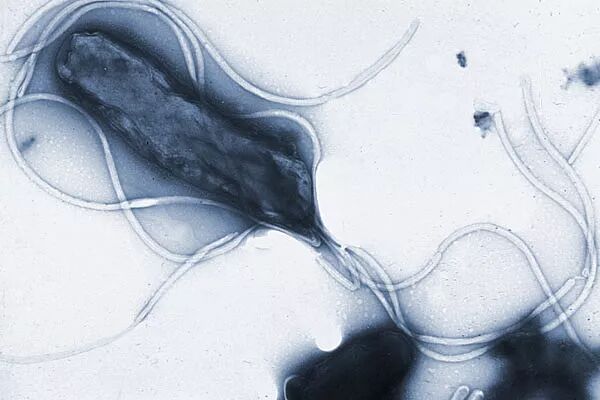 一只幽门螺杆菌,有数根鞭毛 | Yutaka Tsutsumi, M.D.