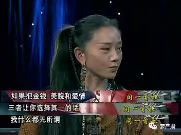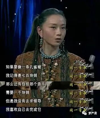 又要说到早年那期《艺术人生》了,节目组问,“金钱、美貌、爱情”三选一选什么,杨丽萍说,无所谓。——当然无所谓了,这里面没有舞蹈啊。