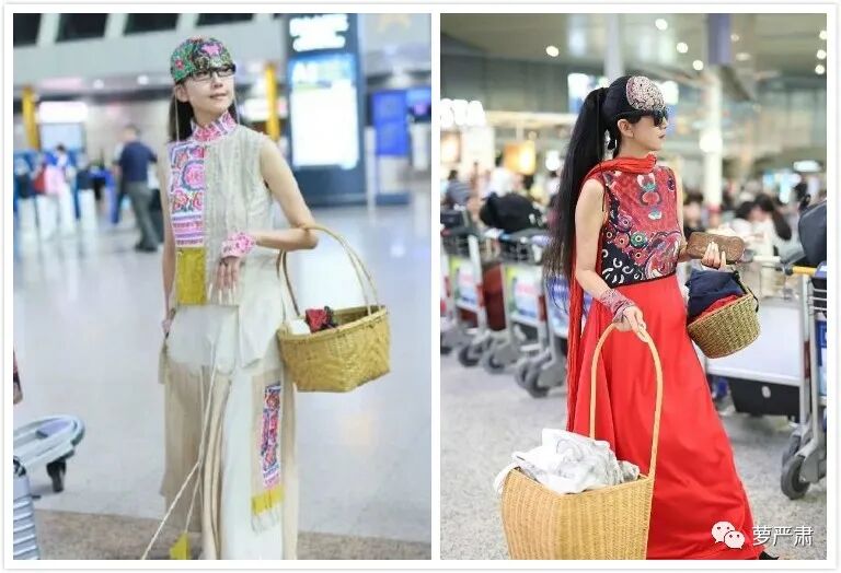 连杨丽萍的机场街拍都跟其他名人不同,她穿的是家乡的印花,提的是竹编的菜篮子,谁说这不是巨星风采呢?