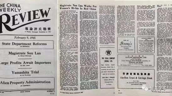 《密勒氏评论报》1946年2月9日标题为《为红色中国女权而工作的孙兰县长》的档案资料