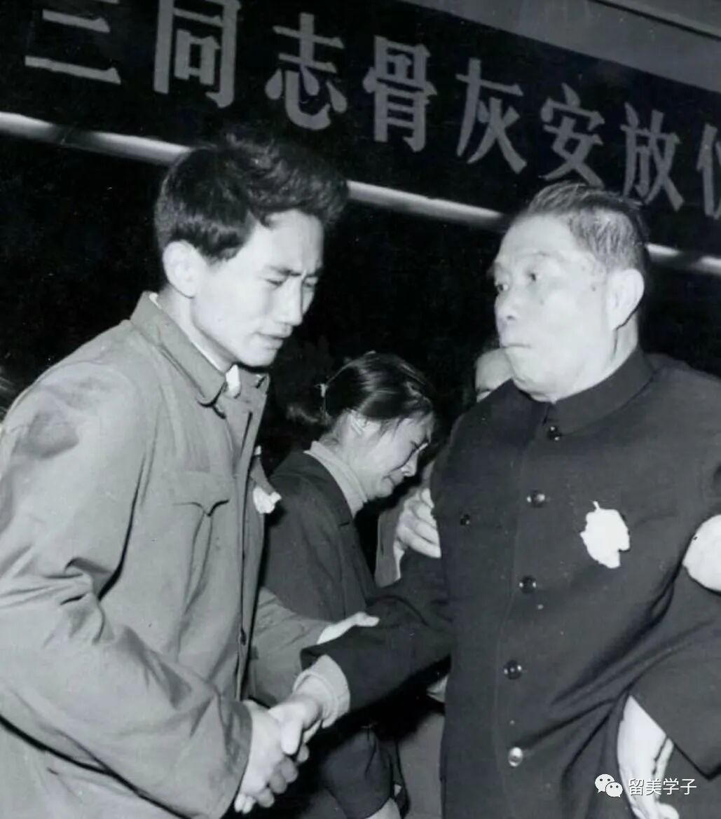 1978年11月21日骨灰安放仪式,恒志和小平捧着毌亲遗像 ,小兰捧着鲜花