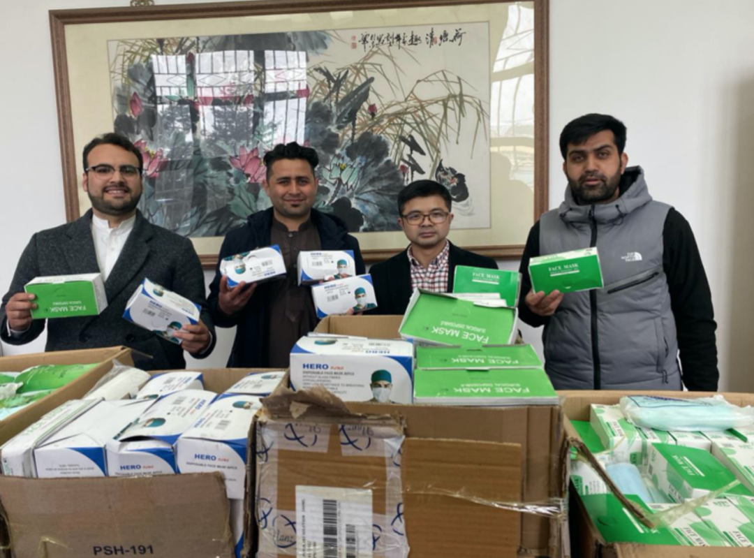 阿富汗留学生在疫情期间为中国捐赠口罩,左二为佳蓝