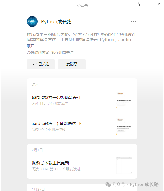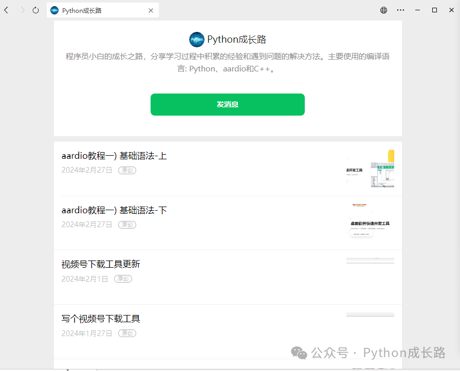 之前写的Python微信机器人系列文章里提到了如何hook微信的实时消息,实时消息里也包含了公众号文章的推送,可以获取到文章的标题链接和发布时间。