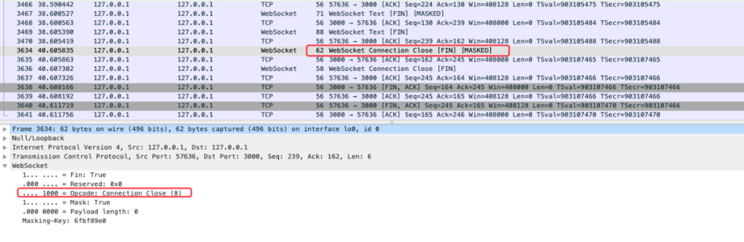 WebSocket 根据 opcode 来区分操作的类型。比如 0x8 表示断开连接,0x0-0x2 表示数据交互。