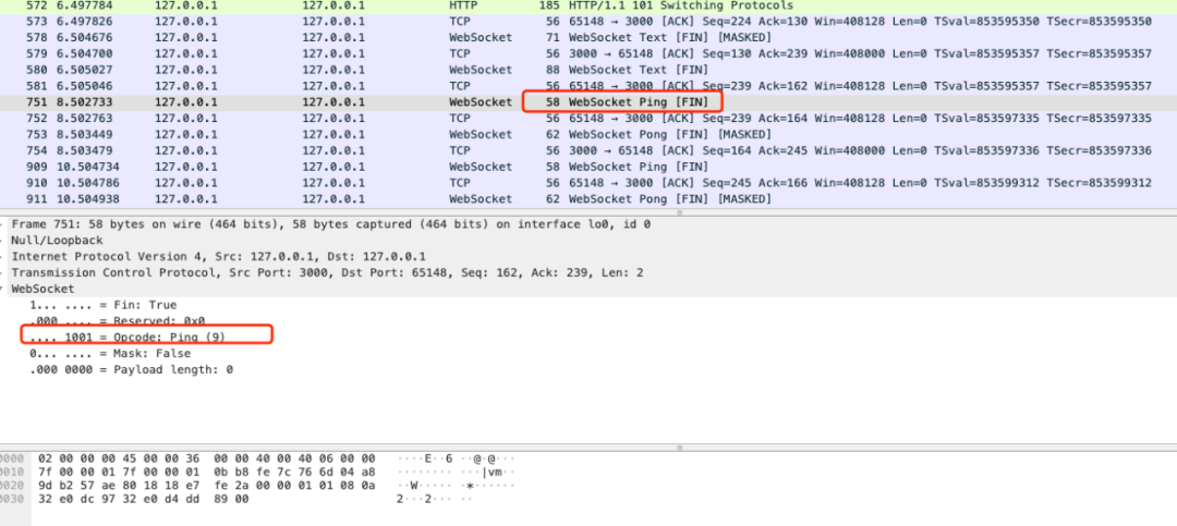 ws.ping('', false, true);今天的 WebSocket 抓包分析就先到这,后续会继续分析基于 WebSocket 之上的 Engine.io 以及 Socket.io 的抓包分析,敬请期待。