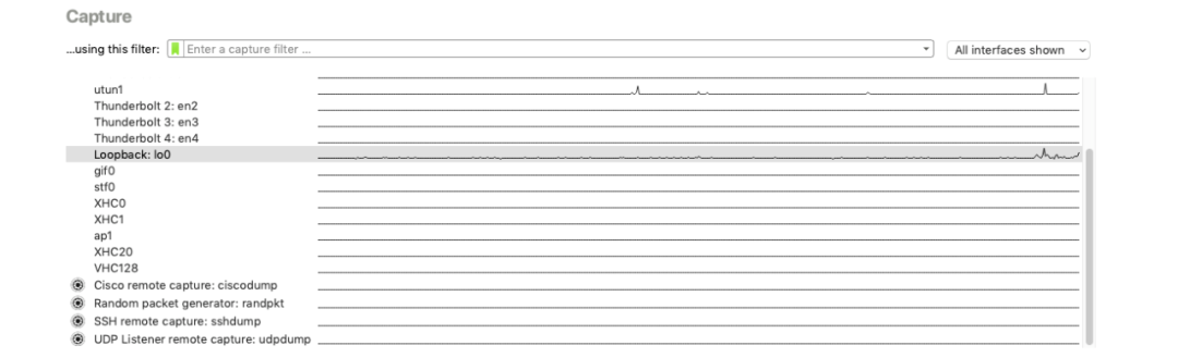 在 Capture 中选择本机回环网络;