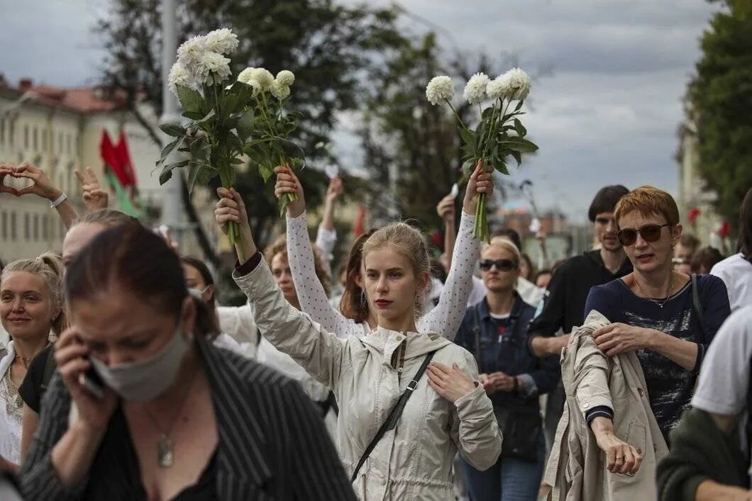 12日清晨,在接连三天的晚间抗议遭遇军警暴力镇压之后,白俄女性发起了一场以鲜花和白衣为辨识标志的和平抗议,以早晨身穿白衣、手持鲜花的女性,作为夜间身穿黑色制服、手持武器的男性军警的对立面,呼吁制止暴力行为。这一号召迅速在白俄全国获得了比此前选举结果抗议更为普遍的响应,并进一步将运动影响力扩散到白俄境外。