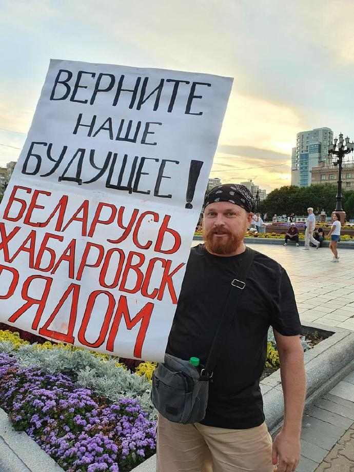 ● 7月31日哈巴罗夫斯克抗议者打出的标语牌:归还我们的未来!哈巴罗夫斯克和白俄罗斯在一起!/ 网络