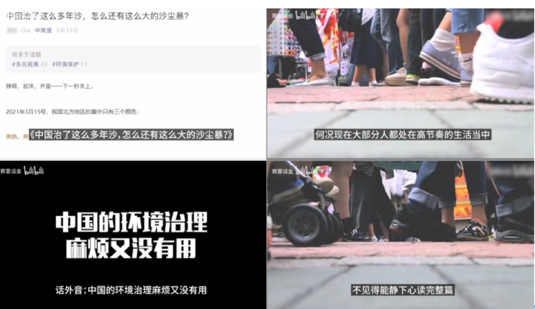 比如,今年3月份,北京突然出现沙尘暴。于是我们写了一篇文章,讲中国的一系列治沙行动已经取得很大成效、但是沙尘暴问题本身难以杜绝。他只看标题,就将其定性为我们说“中国的环境治理麻烦又没用”,还美其名曰“现在大部分人都处在高节奏的生活当中,不见得能静下心读完整篇”;