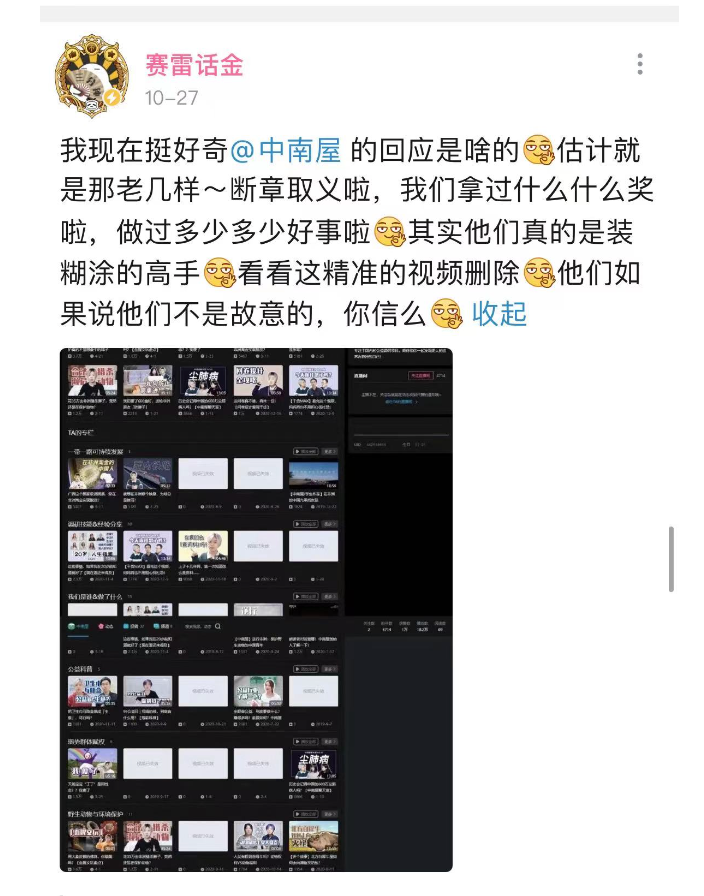 所以,我们可能最后也赢不了他们——在对方的熟练操作下,我们还会被平台封号、失声。然后对方会解读为“你看他们实锤所以被封了”。