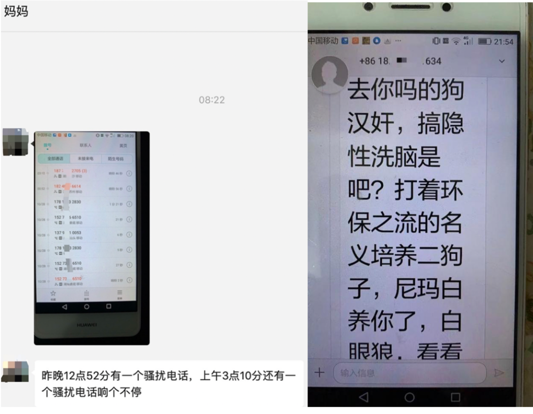他们把我老母亲的家庭地址公之于众,并给她打电话、发短信辱骂,有人跟她说“你等着”;