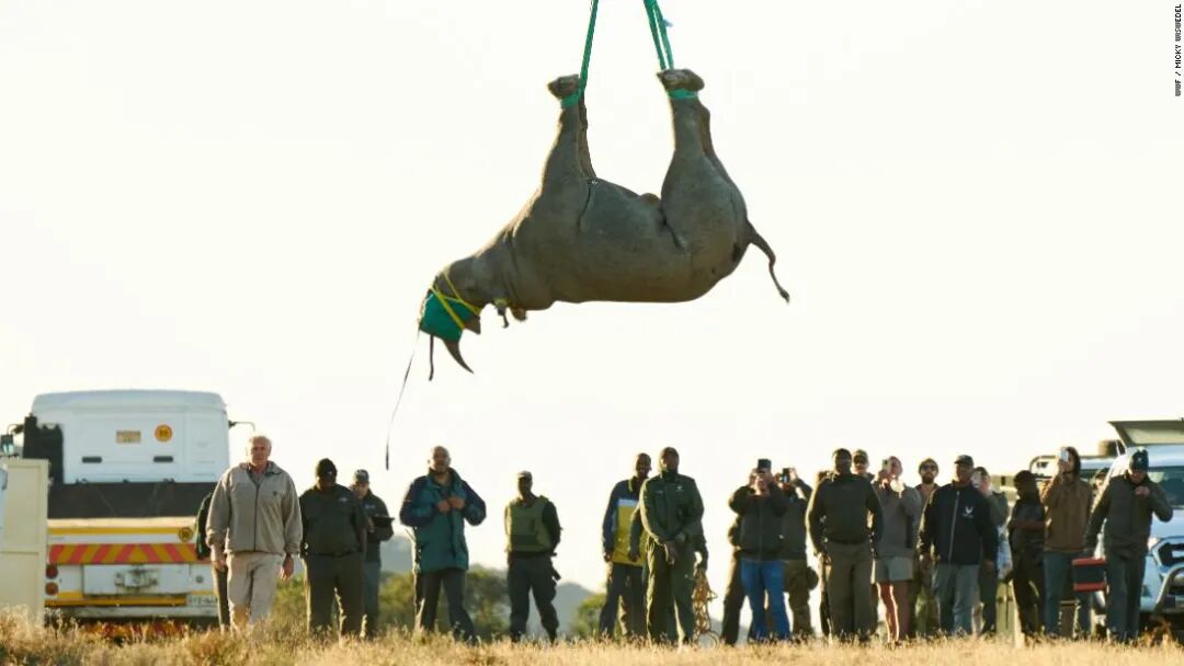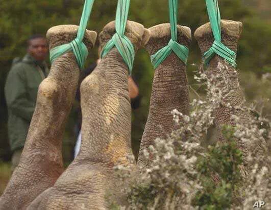 第一次在南非看见这般盛况的记者卡尔弗兰兹说,他最初认为吊着的是一头死牛,于是他感到了某种程度的不适与迷惑,他开始驱车追赶那架神秘的直升机,结果那头犀牛在他头上拉了近乎两吨重的屎。