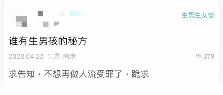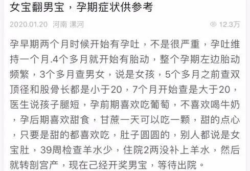 有的孕妈,为了生男孩,没少受罪。这也能解释“求翻盘”、“接好孕”这种看似玄学的行为,毕竟,盖楼、转帖,总好过人流。