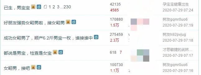 留言的要么是准奶奶,要么是准姥姥,还有《二胎三胎还是女宝怎么办》的求助帖。