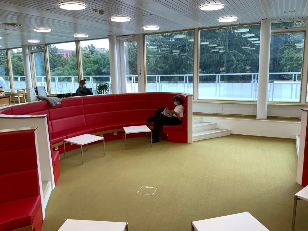每个图书馆都有儿童区域,读书区域还有很多舒服的座椅,有面朝大森林的露台,很多来看书的人可以在沙发上躺一天。