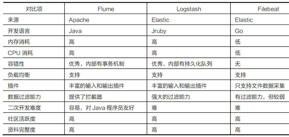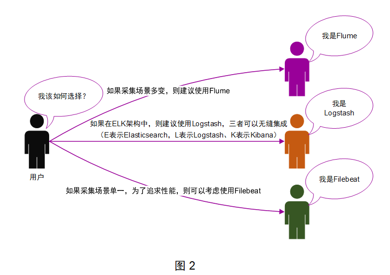 Flume、Logstash和FileBeat的技术选型如图2所示。