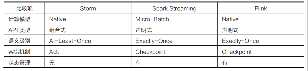 Spark Streaming和Storm、Flink之间的区别见表4。