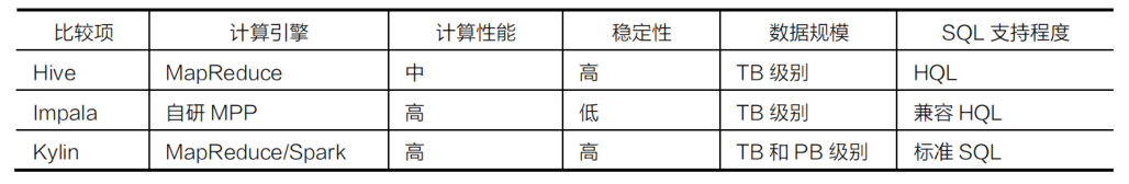 Hive、Impala和Kylin属于典型的离线OLAP数据分析引擎,主要应用在离线数据分析领域,它们之间的区别见表5。