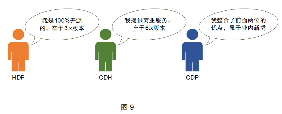 于是,国外一些厂商就对大数据中的组件进行了封装,提供了一体化的大数据平台,利用它可以快速安装大数据组件。目前业内最常见的是包括CDH、HDP、CDP等。