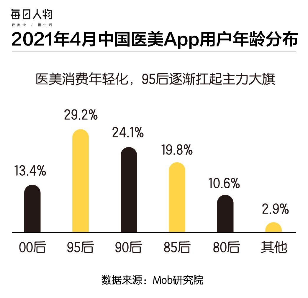 Mob研究院发布的《2021年4月中国医美App用户年龄分布》报告显示,95后用户占比达到了近30%,超过了90后和85后。95后、00后,已然成为医美领域最重要的一批“养成系”消费者。低龄化这一点,也被资本牢牢抓住。