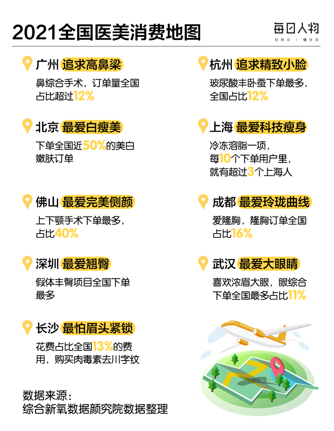偌大的中国,高山河海,丘陵平原,应有尽有。地域的差异,也带来医美差异,就像南方人爱喝汤,北方人喜面食一样,到了医美这件事上,不同城市的人,有着完全不同的偏好。