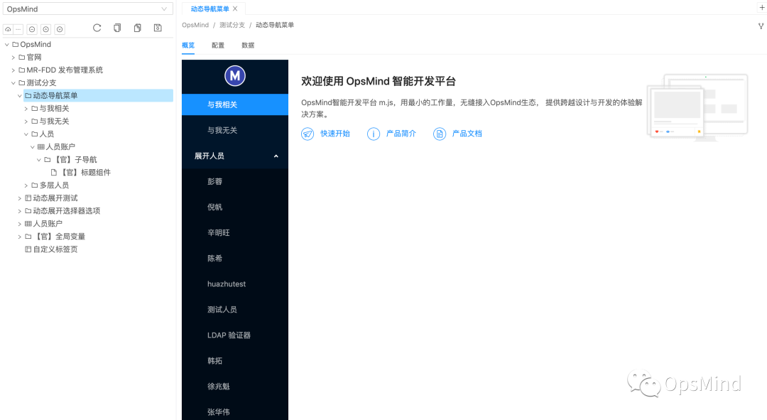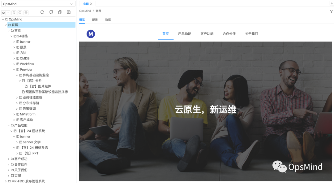 MPlatform,是 OpsMind 一个快速搭建 WEB 站点的平台。在开发过程中,只需要进行简单的组件拼接,就能完成整站的搭建任务,与传统开发方式相比,省去了很多编写代码的工作量。MPlatform 的前身为 OpsMind dashboard,当时的开发平台性能差、卡顿严重、配置繁琐,随着客户需求的不断增加,经过开发团队长时间的摸索和开发,MPlatform 诞生了,相比于之前的版本,MPlatform 借鉴了各大现代框架的设计思想,极大的提高了用户在使用上的体验,它把已有的组件有结构的组织在一起,使用拖拽的方式组装成最终的页面。
