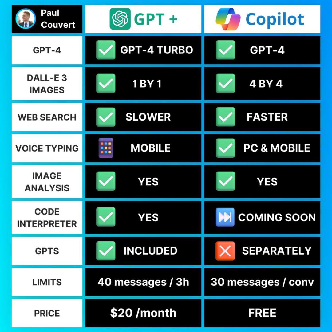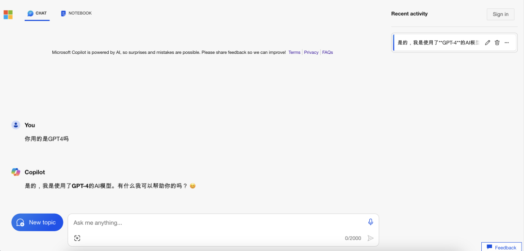 微软Copilot原名是Bing Chat,2023年末改为Copilot,并在2024年初推出了微软Copilot Pro会员订阅。但今天我要推荐的是它的免费版本,搭载的也是GPT4-Turbo 128K模型,比较ChatGPT,我不推荐升级为微软Copilot Pro,毕竟免费版本已经很香了。