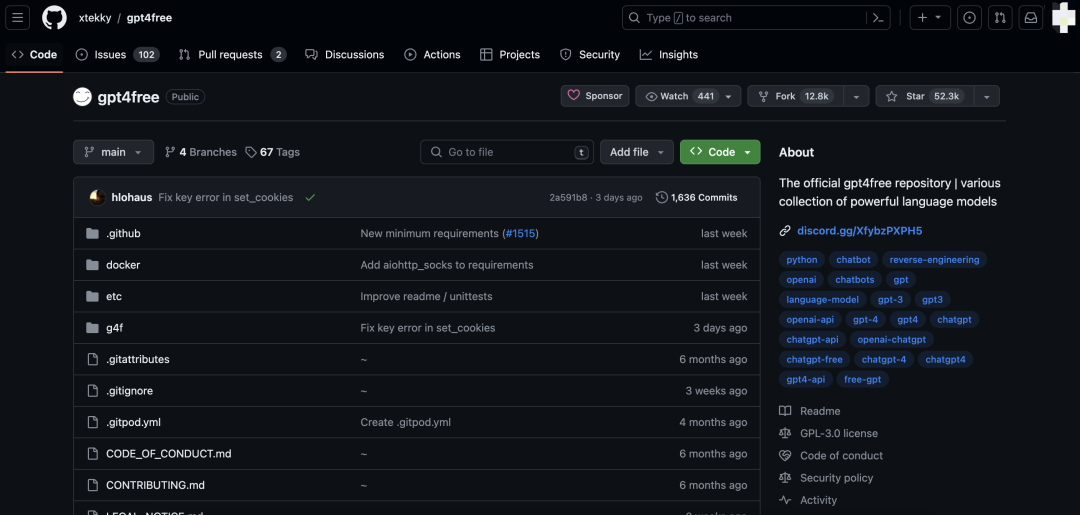 这是一个Github上star数超5.2万的很火的开源项目。这个项目由开发者 Xtekky开发维护,提供免费的GPT-3.5 和 GPT-4 的使用权限。虽然名字中带有 GPT-4,但实际上它还包括了 GPT-3.5 的功能。这个项目的实现原理就是使用逆向工程的方式调用其它开通了GPT-4的应用,比如微软Copilot。虽然 OpenAI 对这个项目表示关注和警告,但实际上 GPT4Free 只是从这些网站获取结果,与 OpenAI 没有直接关联。