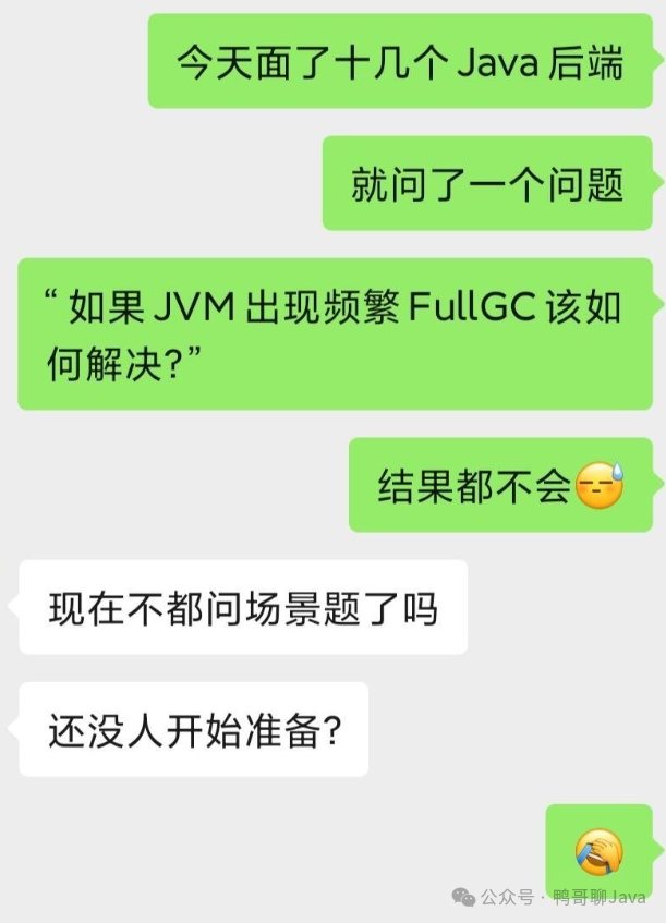 前几天,我看到一个程序员兄弟在论坛里吐槽面试了十几个Java后端,结果面试官就只问了一个问题:“如果JVM出现频繁Full GC该如何解决?”十几个候选人愣是答不上来。