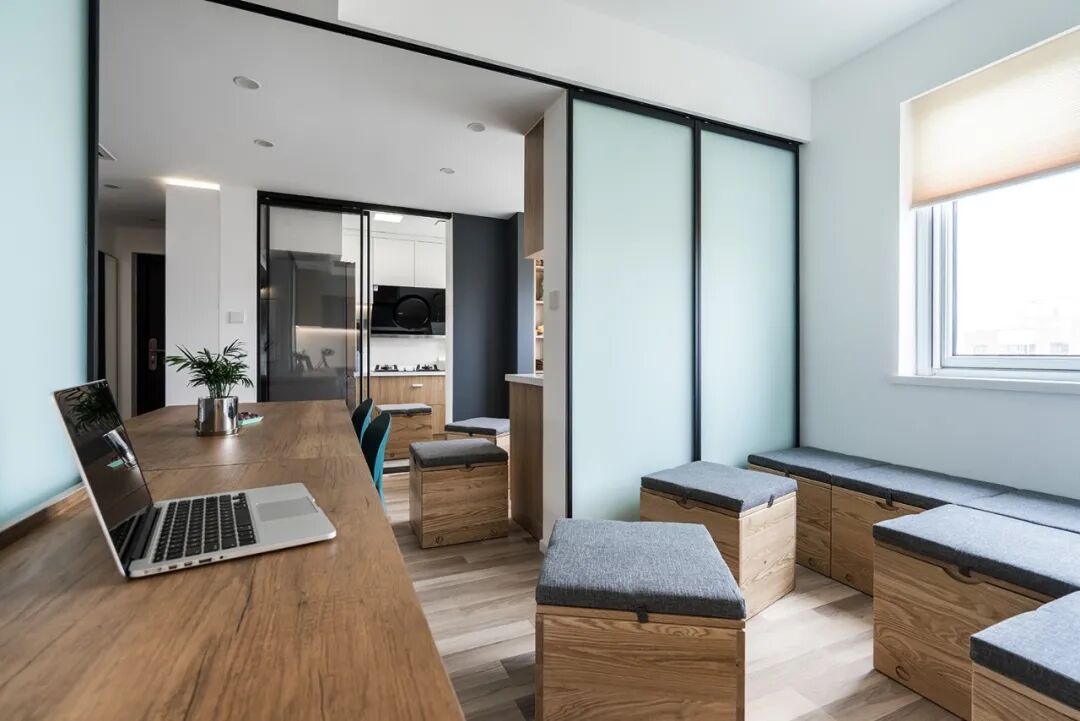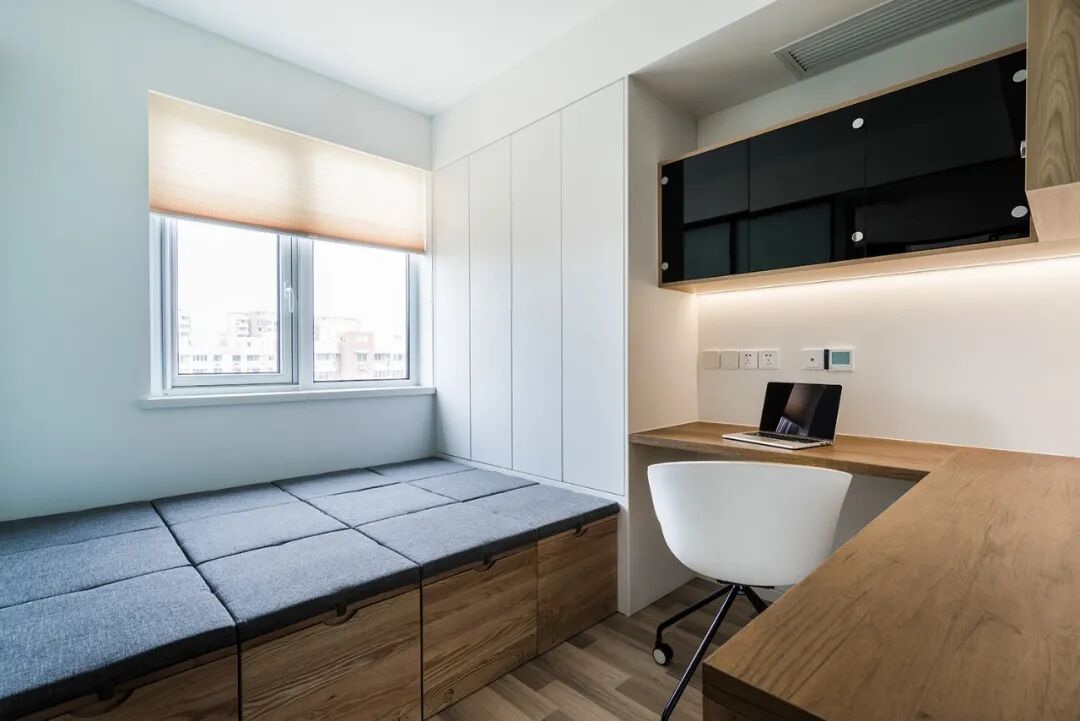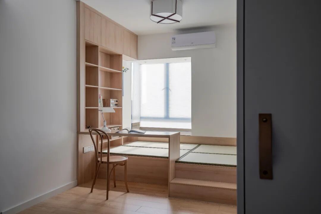 ⭐好用窍门:书桌长边靠着榻榻米,不仅减少定制的体量,还能防止随时犯懒。