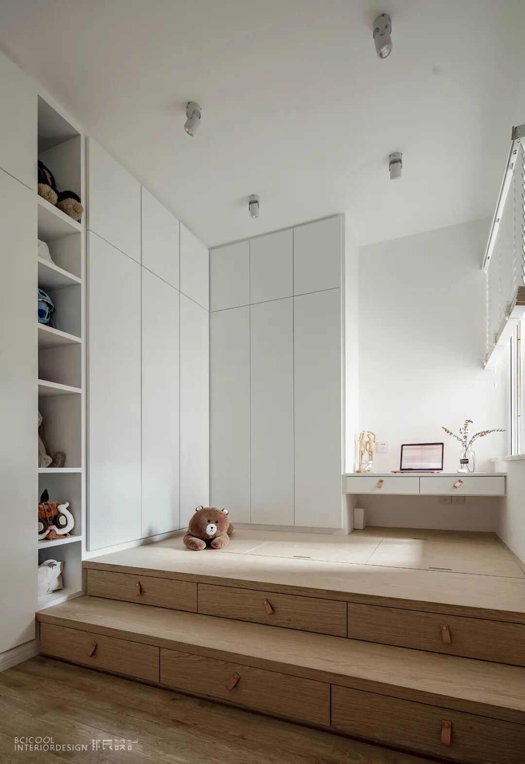 ⭐好用窍门:孩子的衣服、玩具、书本、学习用品等都在不断积累,因此儿童房对收纳空间的要求也尤为高,这时,儿童房和榻榻米的结合就很有看点了。