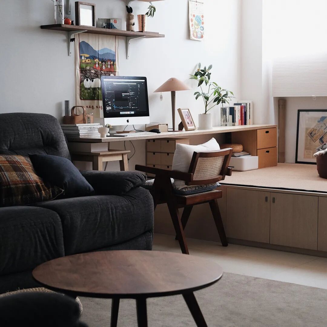 ⭐好用窍门:没有书桌的榻榻米间,也可以简单自制一个工作台,两处用途合而为一。