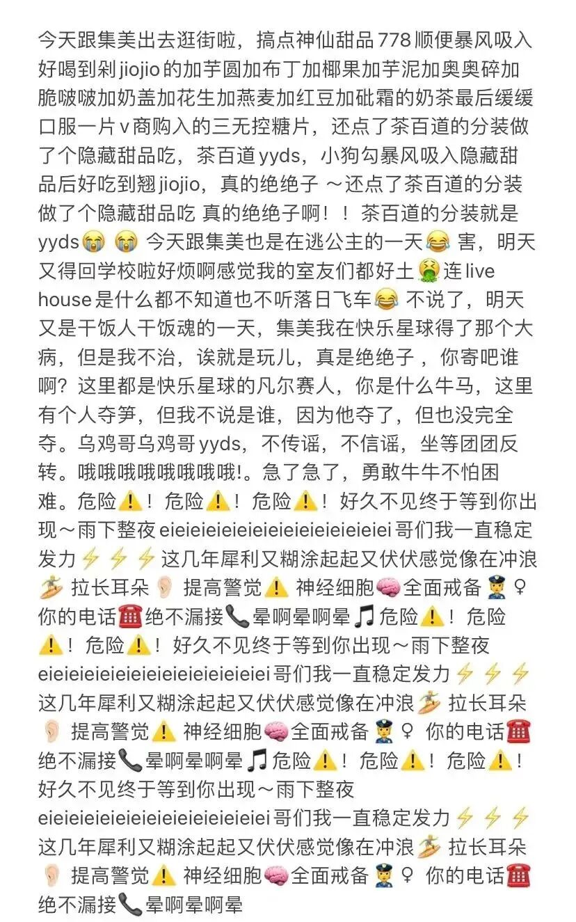 你惊恐地发现,绝绝子之所以如此强大,在于它能包容一切烂梗,去其精华取其糟粕,把一段无比正常的小日记扭曲成克苏鲁圣经。至少在这之前,我从来不知道一段游记可以阴间成这样。