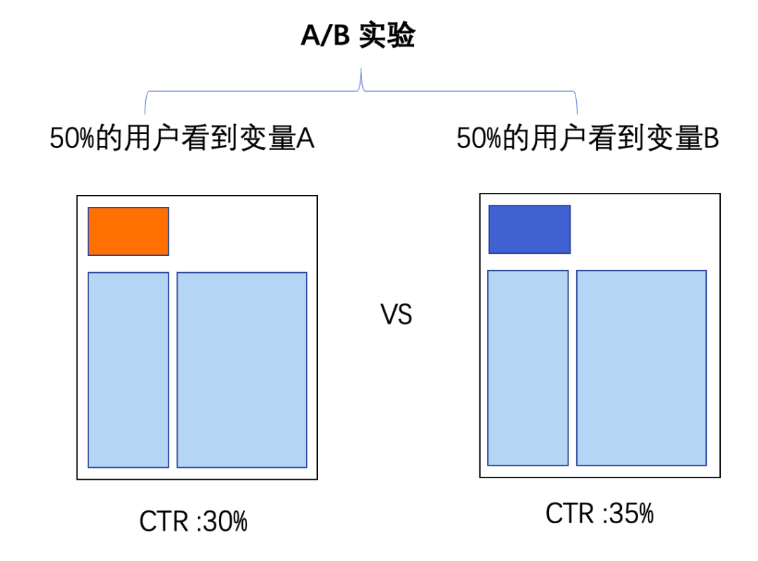 实验度量:实验度量是最为科学的度量方式,它通过对人群进行分组实验来控制单一变量,从而分析这个变更对人群的影响。在实验中,我们将人群分成两个或多个组,其中一个组接受特定的变更(例如新功能、界面设计等、算法逻辑变更),而另一个组则作为对照组不接受变更。通过比较实验组和对照组的差异,我们可以确定变更对人群的影响,进而评估其效果和价值。