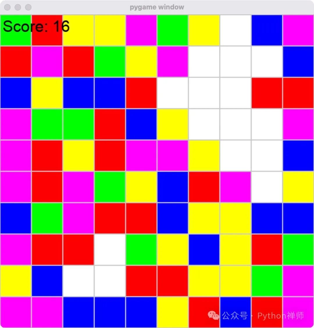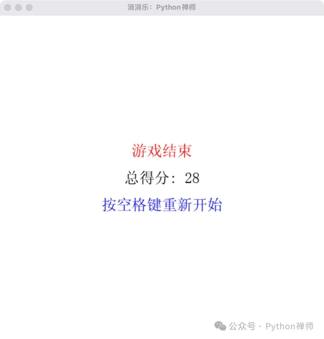 至此,一款符合期望的 Python 消消乐游戏就完成了~
