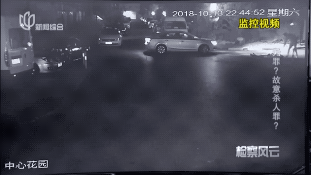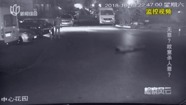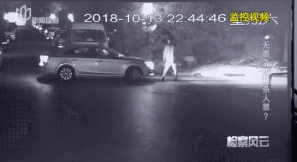 当时的监控画面显示,在黑漆漆的夜色中,隐约可见路中央躺着一个人,撞了人后的面包车司机吓得马上报了警。