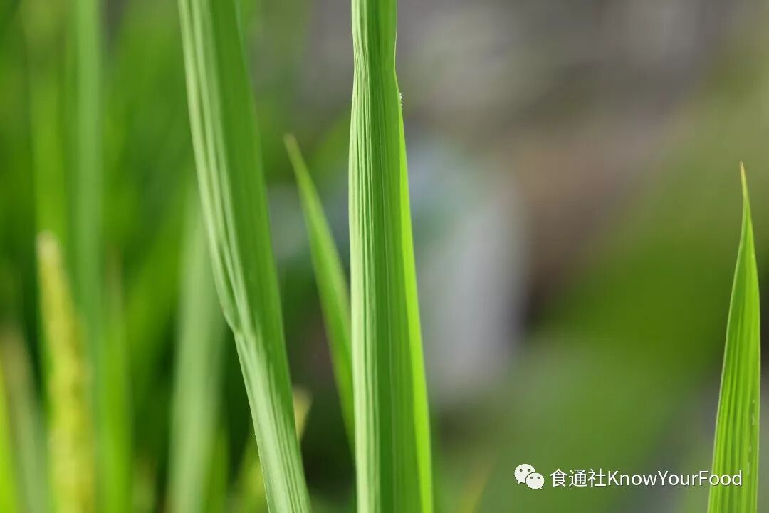 走在田埂上,我仿佛能感到无数剑叶底下那股神秘的生长力量,一圈一圈地向四周滋长。我靠近了看,它们还没有抽穗,绿绿的爽气。友明叔指着一片稻叶接近顶端的地方:“你仔细看这里,这一节好像被人捆过了,它已经包胎(即水稻怀孕)了”。