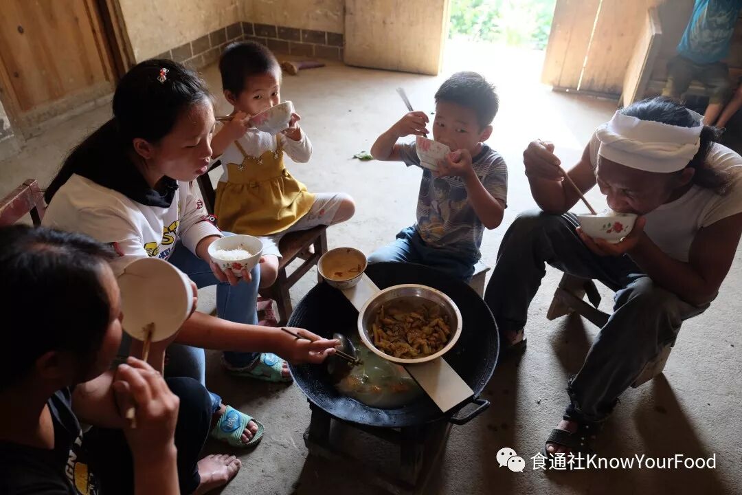 〇友明叔家有很多孩子,每次吃饭都很热闹。