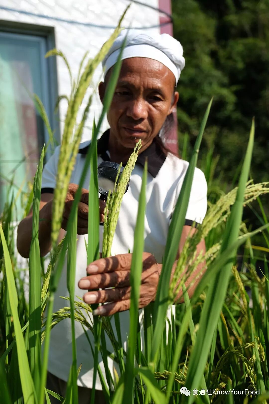 “它们就和我的孩子一样,早晚都要来看一下,有时出门隔几天不见,心里就觉得空落,”友明叔笑说。只见他在青绿的稻浪间穿梭不停,一会儿观察水稻的发苗数量、出穗时间,在本子上做着记录,一会儿又拿出放大镜,看稻花的白蕊与卷叶里的虫害,面容专注,严肃里却流露着温柔。